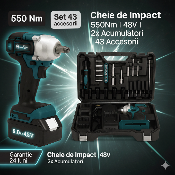 Această cheie de impact 48V combină puterea, mobilitatea și eficiența, fiind una dintre cele mai complete și avantajoase truse de pe piață.